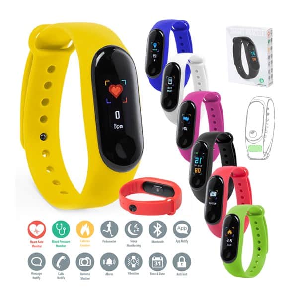 Brazalete inteligente multifunción de diseño deportivo, con conexión Bluetooth® 4.0 y recargable mediante conector micro USB integrado en la pulsera. Su cuerpo en material TPU y su pantalla a color TFT integrada de 0,96 pulgadas lo convierten en el gadget perfecto para todo tipo de actividades deportivas, de ocio y para el día a día. APP disponible para iOS y Android. Con monitorización de frecuencia cardíaca y multitud de funciones. Presentado en atractiva caja de diseño.