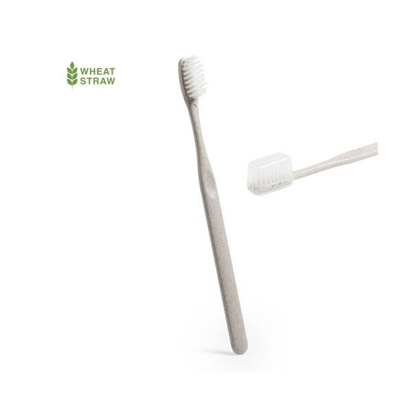 Cepillo de dientes de línea nature. Fabricado en caña de trigo, para así fomentar la utilización de materias primas naturales y reducir las emisiones contaminantes. Con capucha de protección.