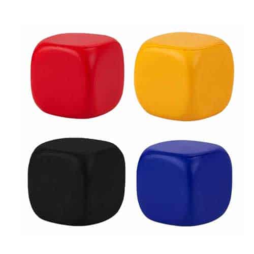Cubo antiestrés, de medida 5.5 cm de diámetro. Contamos con variados modelos de artículos antiestrés.