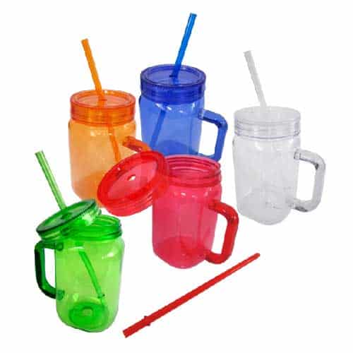 Jarro Mason de plástico translúcidos de un solo color, incluye sorbete.