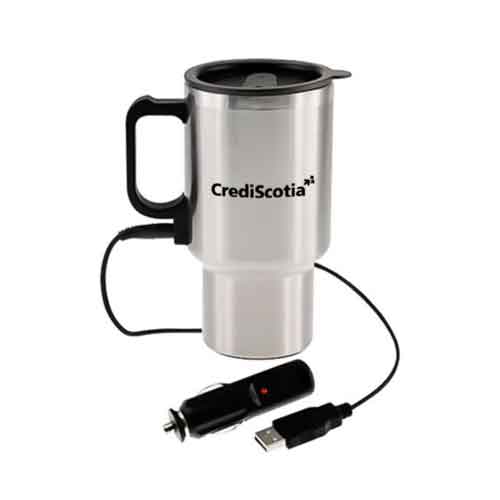 Incluye: Jarro metálico de 450 ml. Con tapa de plástico con retén para evitar pérdidas y cable de conexión USB, con adaptador para auto, para mantener el calor.