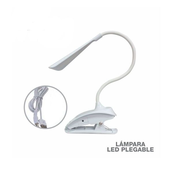 Descripción: Lámpara led pegable con clip, luz blanca y luz amarilla. Incluye cable USB para cargar.