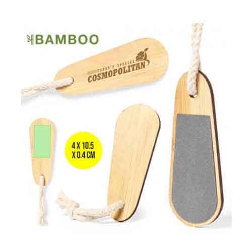 Lima de uñas publicitario de línea nature con cuerpo fabricado en bambú y cordón de transporte en algodón.