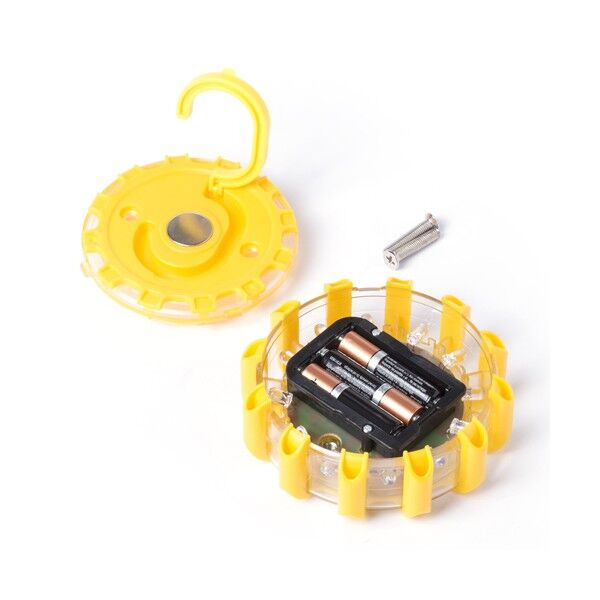 Luz de emergencia de 15 ledes con superficie magnética y 15 posiciones de iluminación. Con accesorio de ajuste. Alimentación a pilas: 3xAAA no incluidas.