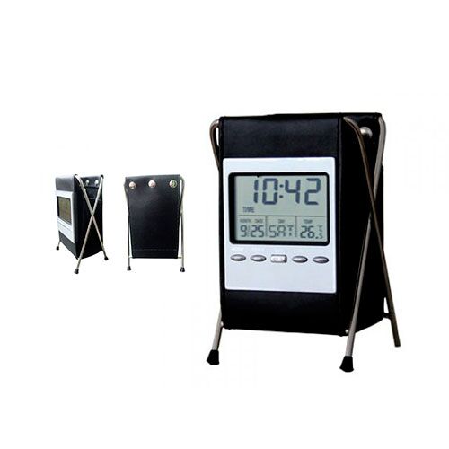 Incluye: Portalapicero con cuerina y soporte de metal, con reloj en la parte frontal.