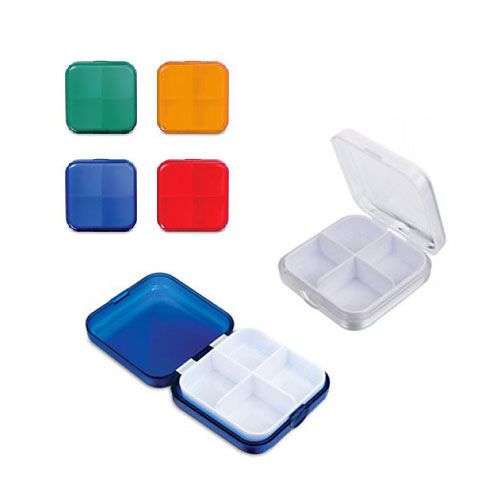 Incluye: Porta pastillas de plástico forma cuadrada con 4 compartimientos.