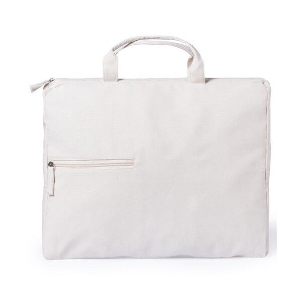 Portadocumentos de cierre de cremallera con bolsillo frontal en suave acabado 100% algodón natural. Con fuelle, asas de transporte reforzadas, bolsillo de cremallera frontal y cintas de algodón en tiradores para fácil apertura.