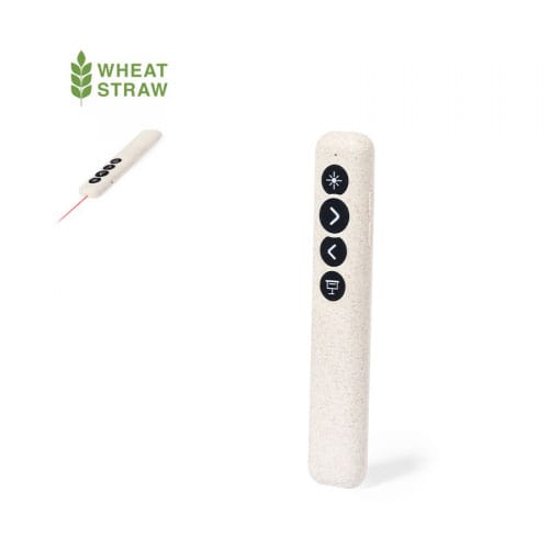 Puntero laser presentador, puntero láser de clase 2 con conexión USB fabricado en caña de trigo. Especialmente diseñado para presentaciones PowerPoint y Keynote, incorpora pulsador de activación lateral, con botones de avance, pausa y retroceso. Con cuerpo especialmente diseñado para marcaje en tampografía. Alimentación a pilas: 1xAAA incluida. Presentado en caja de diseño kraft, con manual de instrucciones en español e inglés. La caña de trigo fomenta la utilización de materias primas naturales, reduciendo así las emisiones contaminantes. Inalámbrico. Conexión USB. 1 Pila AAA/ R03 Incluida