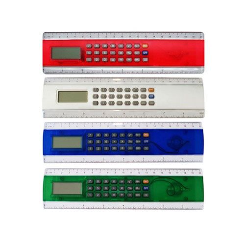 Incluye: Regla de plástico de 20 cm. con calculadora a pilas.