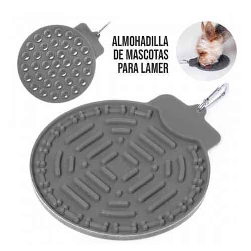 Tapete para lamer, almohadilla de mascotas para lamer fabricada en suave silicona. Con potentes ventosas para fijarla en superficies planas y que las mascotas puedan lamer su rugosa superficie. Medidas: Diámetro: 14.5 cm, alto: 0.7 cm | Peso: 73 gr.